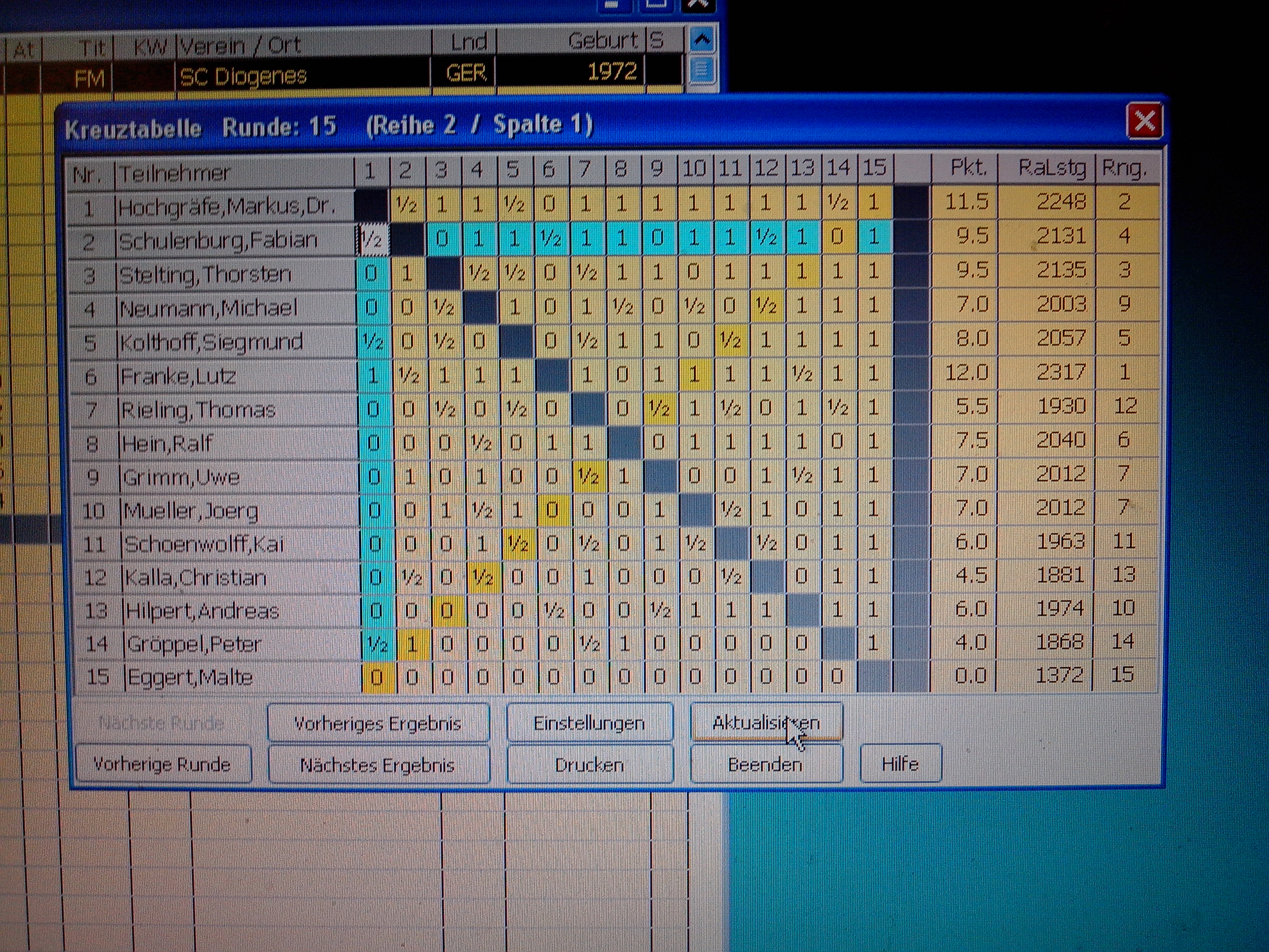 Am 17.01.17 fand ein wirklich toll besetzter Blitz-GP statt. Insgesamt waren wir 15 Teilnehmer, davon 6 Externe. Auch die Qualität war gut. So soll es sein und so geht es hoffentlich auch im Rest des Jahres weiter!