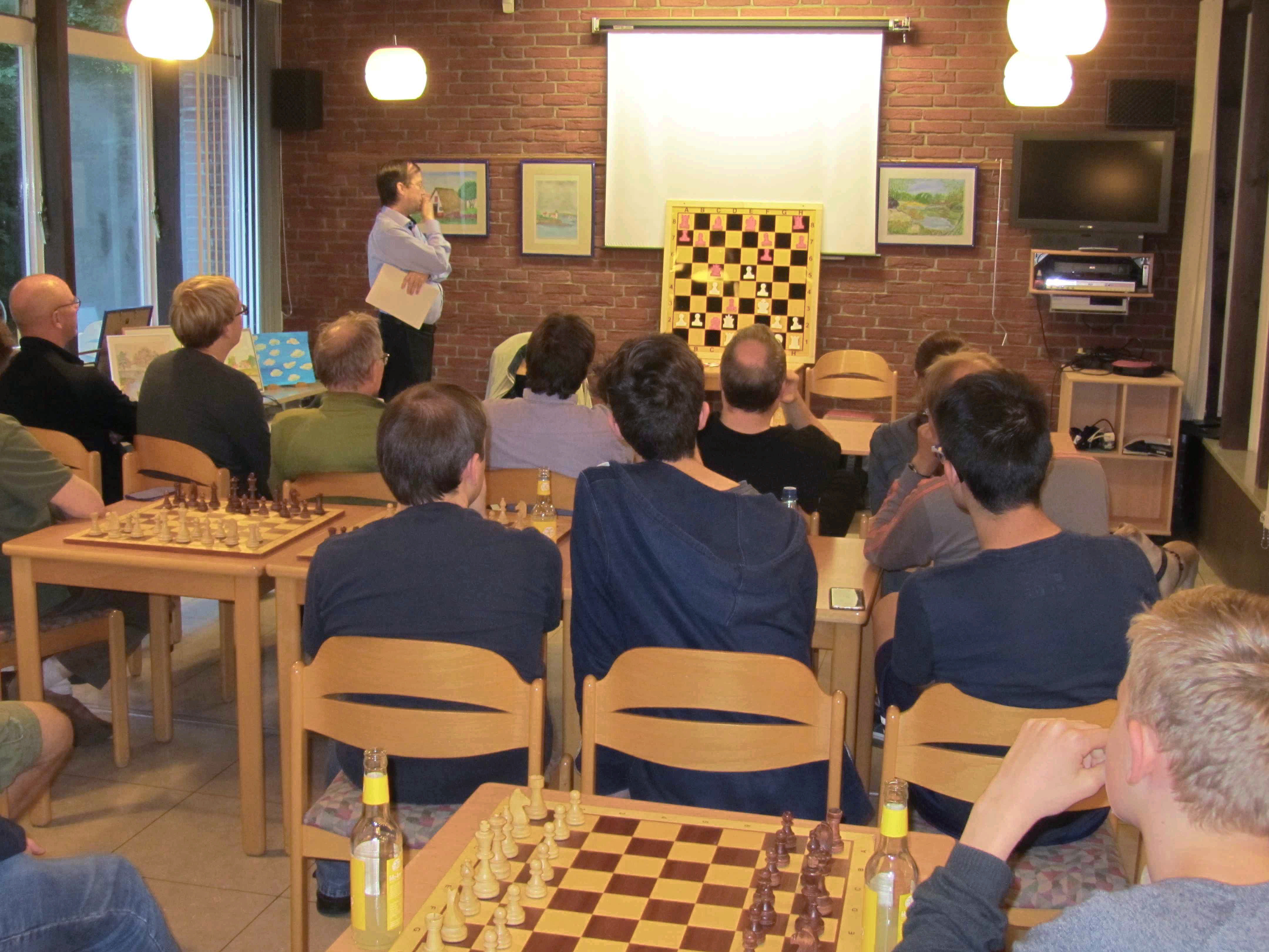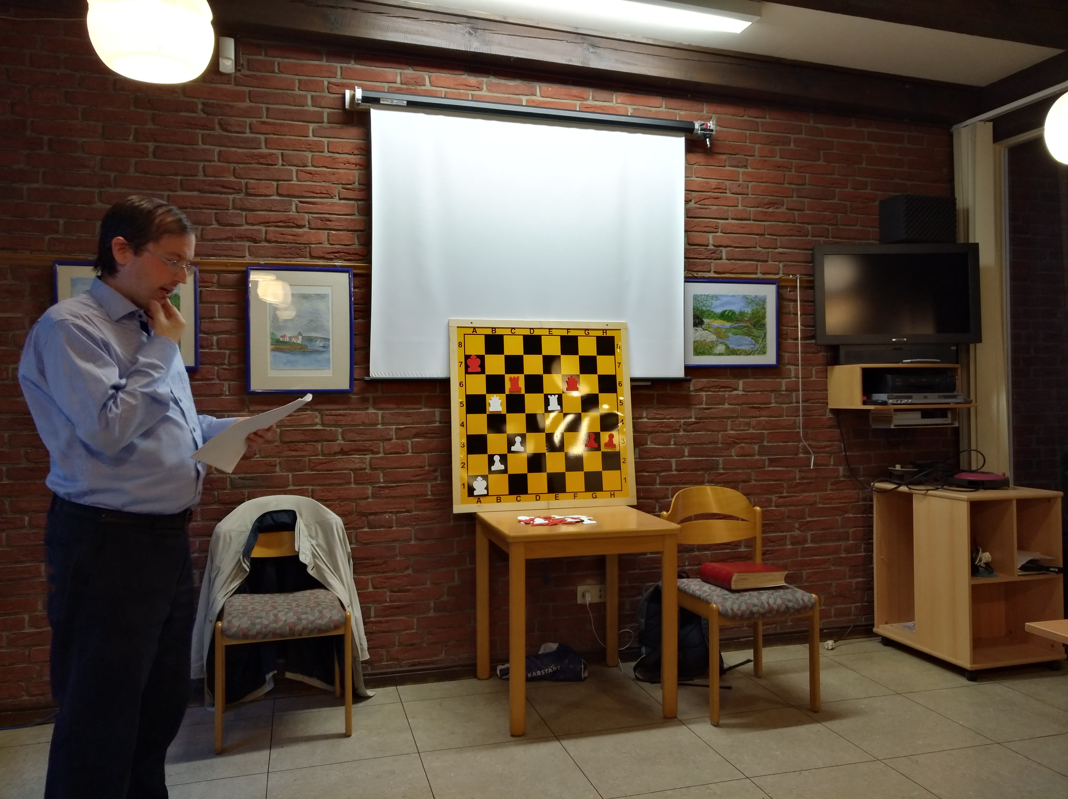Am Samstag trafen sich auch ein paar Deutsche Meister von 1987, einschließlich unseres GM Karsten Müller, der unsere stärksten Spieler seit einiger Zeit wieder mit Training unterstützt und auch am Jubiläumstag nach Verspätung durch den langen Simultankampf mit humorvollen Erinnerungen an Glanz- und Grinspunkte vom Beginn seiner Schachkarriere für ein volles Haus zur besten Fernseh- und Schlagermuffzeit sorgte!