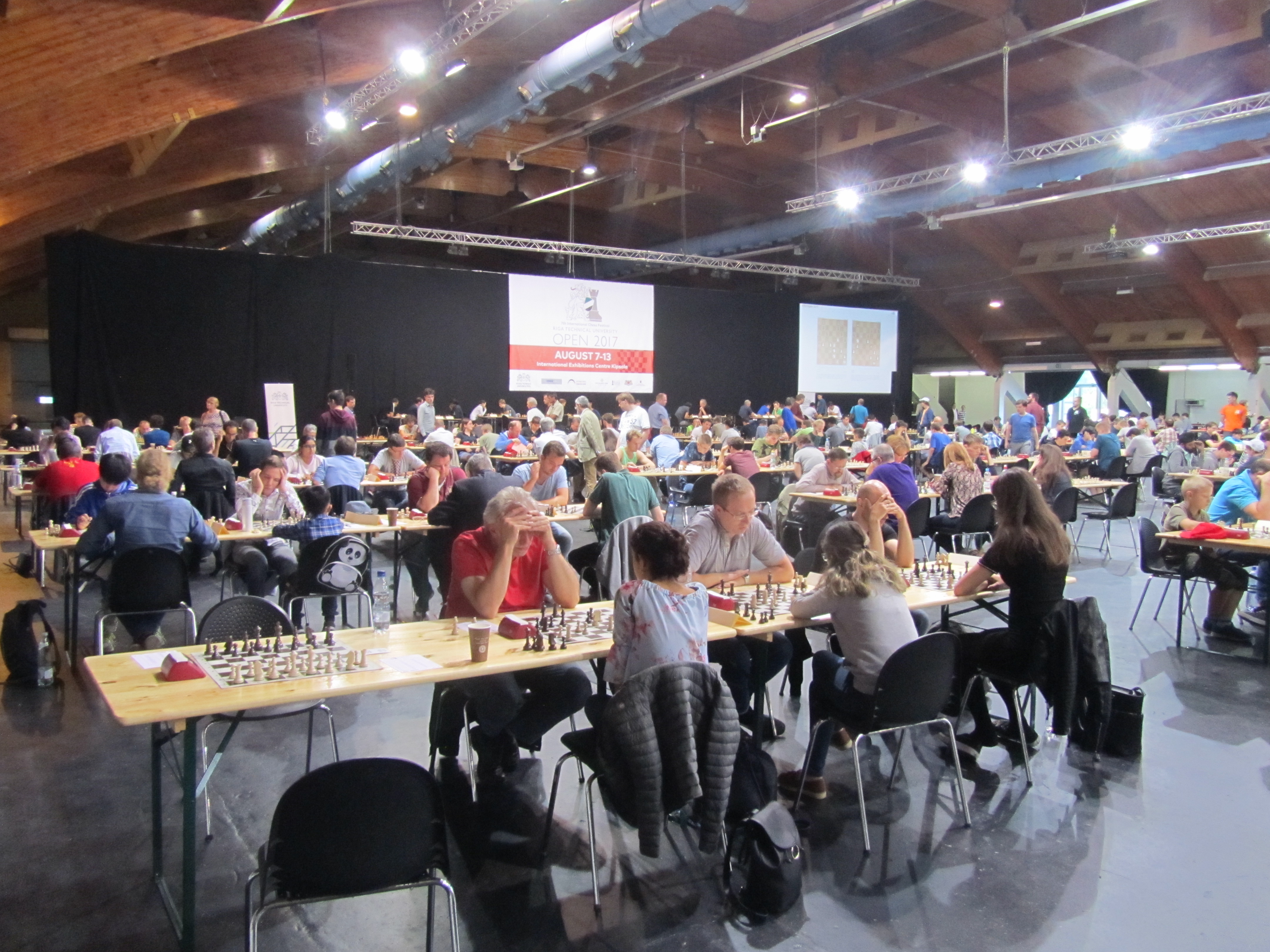 Desweiteren ungewöhnlich war die Altersstruktur: Im A-Open spielten ca. 40 % U20- und jüngere SpielerInnen, mit denen Ralf (2,5/6) und ich (3,5/4) recht ordentlich zurecht kamen. Und auch der Frauenanteil war mit ca. 15% höher als üblich. Beide Gruppen sind ja auch für eher kämpferischen Stil bekannt – vielleicht auch demzufolge habe ich einschließlich der 9. Runde – außer an den Spitzentischen – nur sehr wenige schnelle Remise beobachtet. Die Spielbedingungen waren hervorragend, wenn man sich daran gewöhnt hatte, sich selbst zu verpflegen und die für mich erstmals erfahrene Spielzeit von 90 Min. plus 30 s /Zug für die gesamte Partie annehmen konnte. Denn die führt dazu, dass auch alle Spitzenspieler ihre Endspiele mit meist weniger als 5 Min. Restbedenkzeit zu Ende spielten – gutes Endspielwissen und eine gute Eröffnungsvorbereitung werden auf diese Weise noch wichtiger …