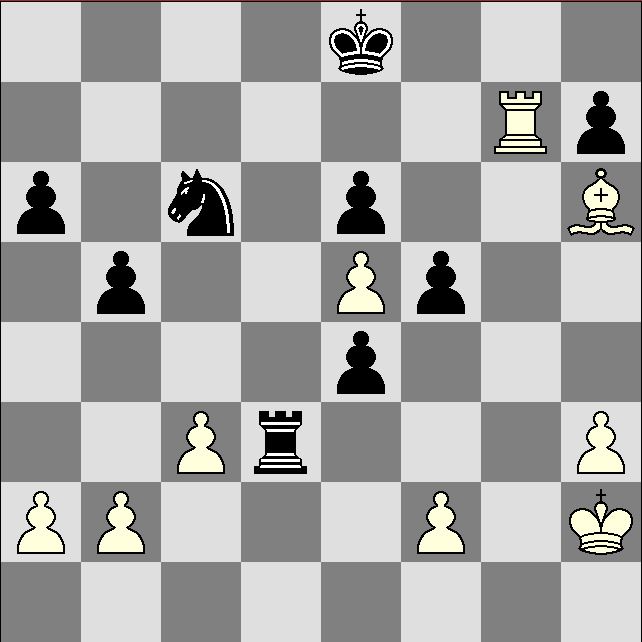 Heraus kam dann das Endspiel in Diagramm 2, das Oliver durch Zugwiederholung auf die Turmschachs auf g7 und g8 Remis gab, wohl auch, weil Sylvins Stellung nicht direkt nach Gewinn aussah, aber schon 3 Min. nach unserem Remis von Jörg aufgegeben wurde. Es stellen sich in (2) einige Fragen fürs nächste Dr. Markus-Training: