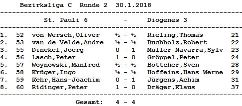 Verstärkt durch Achim und Klaus aus unserer Vierten traten wir gestern beim Ligafavoriten St. Pauli VI an. Obwohl beim Gegner die Nr. 1 fehlte, stand ein durchschnittliches DWZ- Plus von 50 Pkt auf dem Papier. (Dazu kommt dann noch, dass Oliver von Wersch 130 Pkt weniger als ich in die Saison mitbringt, was gemessen an dem Potenzial, das er zu Oberligazeiten in Pinneberg aufs Brett brachte, ein Witz ist.) Aber wir wollten dem eigentlich im letzten Jahr schon aufgestiegenen Favoriten, der St. Pauli-intern seinen Stadtligastartplatz zur Verfügung stellte, einen offenen Kampf liefern. Dazu zählte, dass Sven und Hans-Werner als Außenseiter von Beginn an Remisfreiheit hatten, was bei Sven überraschend früh vereinbart und von Hans-Werner später sicher erkämpft wurde. Achim hatte daraus richtig gefolgert, dass er auf Gewinn spielen sollte (immerhin gegen gegen Hajo Kehr) und setzte dies schon am Ende der Eröffungsphase formschön um, weil Hajo etwas ideenlos agierte (ein Diagramm müsste Achim mal rüberschicken!). Peter hatte aber vor all diesen Geschichten erneut sehr unkonzentriert verloren. Nachdem Klaus eine wilde Partie aufgeben musste, waren die Bretter 1-3 gefragt, den Rückstand auszugleichen – Achim hatte schon zu Beginn treffend geschätzt, dass wir dort 2,5/3 bräuchten, um Mannschaftspunkte mitzunehmen. Da es nur 2/3 wurden, ist es eben nur 1 Punkt geworden – und damit dürfen wir zufrieden sein. Sylvin überspielte Jörg Dinckel recht souverän, nachdem sich Robert in ein wie-immer-remises Turmendspiel retten konnte, und ich selbst nach etwas planloser Eröffnung das Risiko einging, den mit Blick aufs Endspiel vermeintlich schlechten Läufer beim Tauschgeschäft auf e5 zu behalten, um die schwarzen Felderschwächen um den König herum sofort auszunutzen: