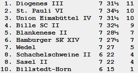 Ach du Sch … nun sind wir Tabellenführer, weil auch St. Pauli an der Überraschungsmannschaft aus Eimsbüttel gescheitert ist! In Runde 8 folgt nun gegen Bille ein Kampf mit Möglichkeit zur Aufstiegsvorbereitung, bevor man in Rd.9 nach Billstedt fährt.