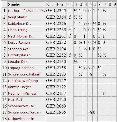 Wir haben uns gestern mit einem 4,5:3,5 gegen den Tabellenletzten Lübeck etwas Luft verschafft. Aber seht selbst, wie knapp es ist: