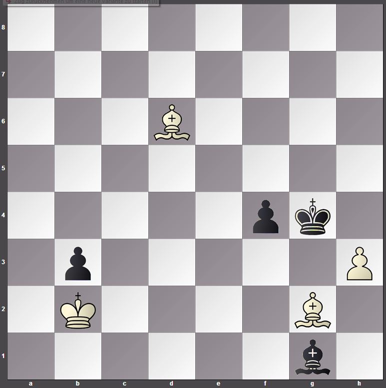 Heraus kam meiner und Stefans Meinung nach ein Endspiel für unsere Meistertrainer: „Ich habe mir jetzt auch das Endspiel einmal angesehen – mit Komodo 12 – und es ist tatsächlich die Frage, ob Schwarz mit Kg3 (+= 0.66 mit Tiefe 44) eine Blockade einleiten kann. Allerdings als praktisches Endspiel mit geringer Zeit ist das kein Vergnügen …“